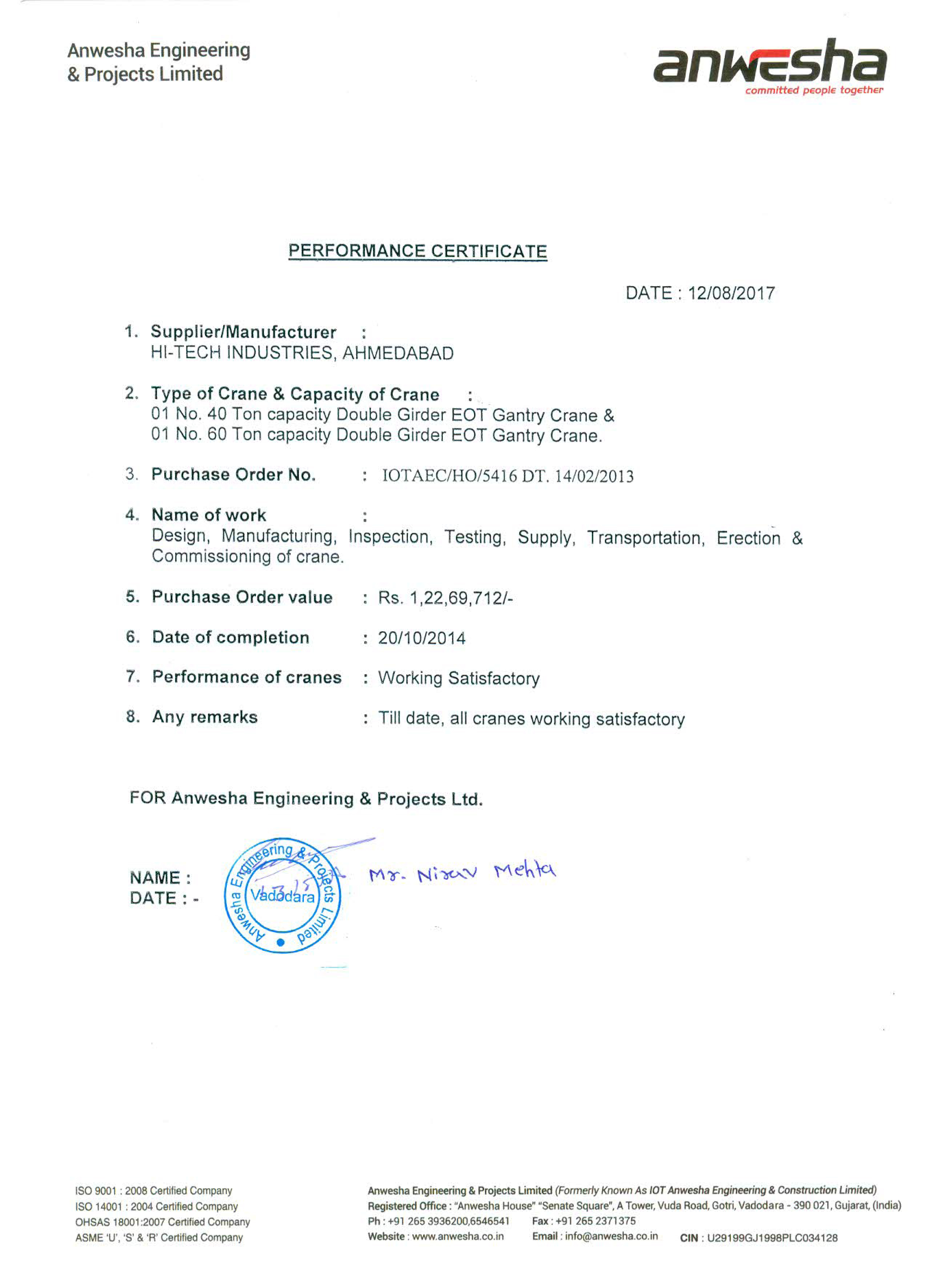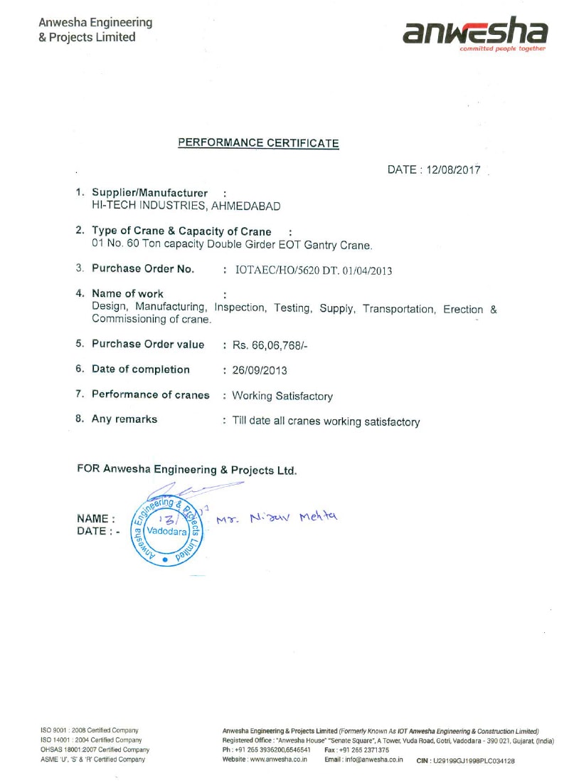 ANWESHA ENGINEERING & PROJECTS LIMITED